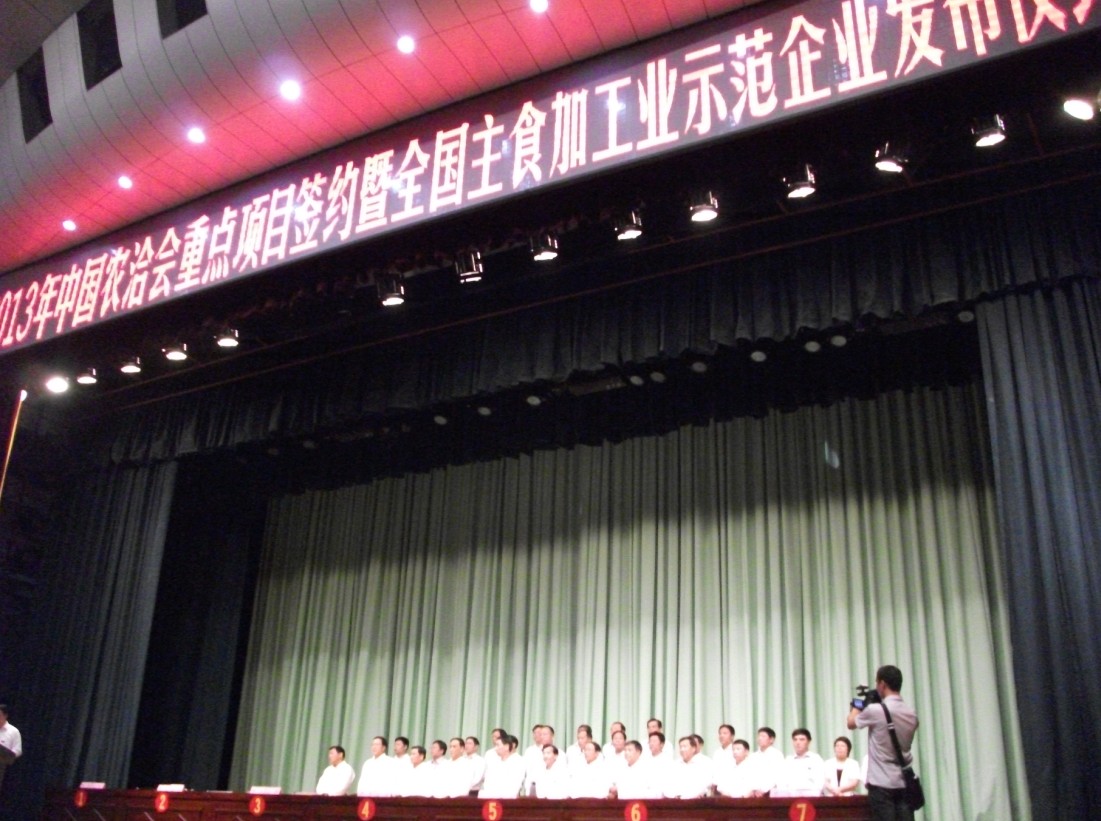 2013年中國農(nóng)洽會重點(diǎn)項(xiàng)目簽約暨全國主食加工業(yè)示范企業(yè)發(fā)布儀式現(xiàn)場