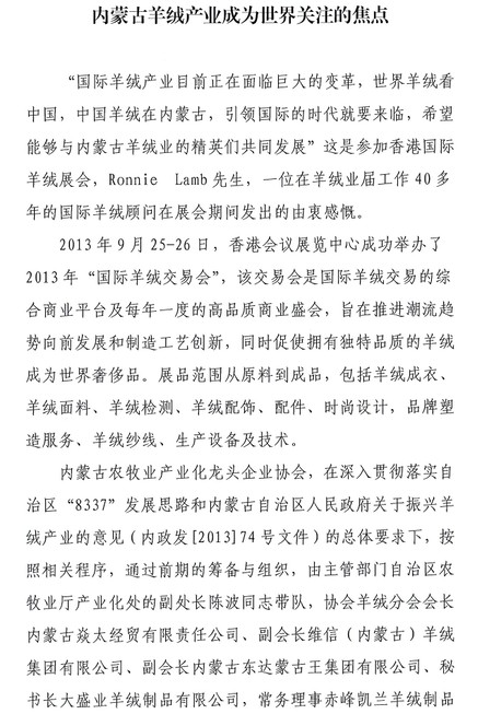 標(biāo)題:內(nèi)蒙古羊絨產(chǎn)業(yè)成為世界關(guān)注的焦點
