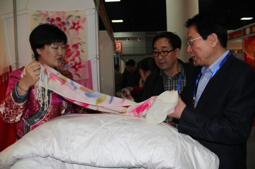 農(nóng)牧業(yè)廳領(lǐng)導(dǎo)一行參觀昭君駱駝產(chǎn)業(yè)有限公司展位      農(nóng)牧業(yè)廳領(lǐng)導(dǎo)一行參觀內(nèi)蒙古喬家大院食品有限公司展位