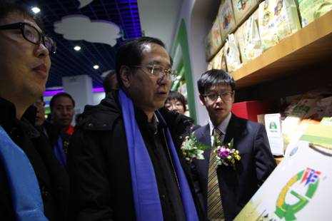 王玉明副主席和郭健廳長(zhǎng)為內(nèi)蒙古精品館上海館開業(yè)揭幕,林永亮執(zhí)行會(huì)長(zhǎng)為內(nèi)蒙古精品館館長(zhǎng)杜勇頒發(fā)授權(quán)書,其他與會(huì)人員現(xiàn)場(chǎng)見證了揭幕及授權(quán)儀式。隨后,王玉明領(lǐng)導(dǎo)一行進(jìn)入內(nèi)蒙古館巡視展館,王主席在巡館時(shí)親切詢問(wèn)了解入駐精品館的企業(yè)和產(chǎn)品,并提出了幾點(diǎn)要求,希望運(yùn)營(yíng)商和企業(yè)都嚴(yán)把產(chǎn)品質(zhì)量關(guān),肩負(fù)起讓內(nèi)蒙古優(yōu)質(zhì)農(nóng)畜產(chǎn)品走出去的重任,積極拓寬上海的銷售市場(chǎng),將內(nèi)蒙古綠色農(nóng)畜產(chǎn)品精品館打造成代表內(nèi)蒙古真正水平的展示和銷售平臺(tái)。王主席一行還現(xiàn)場(chǎng)觀看了自治區(qū)農(nóng)畜產(chǎn)品質(zhì)量安全追溯平臺(tái)演示。