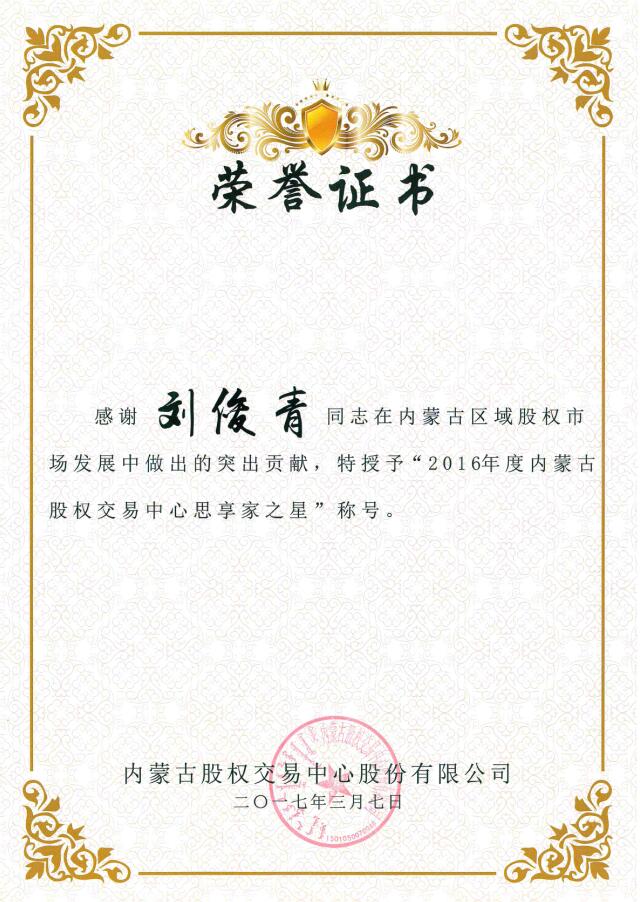 在37日上午召開(kāi)的首屆內(nèi)蒙古股權(quán)交易中心會(huì)員和分支機(jī)構(gòu)大會(huì)上,內(nèi)蒙古農(nóng)牧業(yè)產(chǎn)業(yè)化龍頭企業(yè)協(xié)會(huì)因積極支持并參與內(nèi)蒙古區(qū)域股權(quán)市場(chǎng)工作,榮獲內(nèi)蒙古股權(quán)交易中心頒發(fā)的“突出貢獻(xiàn)獎(jiǎng)”,協(xié)會(huì)執(zhí)行會(huì)長(zhǎng)兼秘書(shū)長(zhǎng)林永亮及常務(wù)秘書(shū)長(zhǎng)劉俊青均榮獲“內(nèi)蒙古股權(quán)交易中心思享家之星”稱號(hào)。這是對(duì)協(xié)會(huì)在2016年對(duì)內(nèi)蒙古區(qū)域股權(quán)市場(chǎng)發(fā)展中突出貢獻(xiàn)的肯定,更是承載著一份責(zé)任和希望,新的一年,內(nèi)蒙古農(nóng)牧業(yè)產(chǎn)業(yè)化龍頭企業(yè)協(xié)會(huì)將繼續(xù)秉承“溝通 服務(wù) 自律 發(fā)展”的服務(wù)宗旨,乘勢(shì)而上,加壓奮進(jìn),開(kāi)拓創(chuàng)新,找準(zhǔn)協(xié)會(huì)工作與股權(quán)經(jīng)濟(jì)建設(shè)的結(jié)合點(diǎn),為推動(dòng)農(nóng)牧業(yè)產(chǎn)業(yè)化發(fā)展做出新的貢獻(xiàn)。