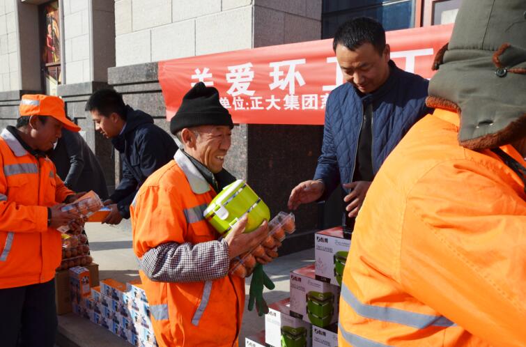 為了表達對他們的感謝,正大集團內蒙古區(qū)于328日舉辦了“關愛環(huán)衛(wèi)工 共建魅力城”活動,為呼和浩特市的100名城市環(huán)衛(wèi)工送上保溫飯盒、保溫杯、手套、防霧霾口罩以及正大雞蛋等慰問品。活動呼吁大家向環(huán)衛(wèi)工人學習,學習他們默默奉獻的精神,多多體諒環(huán)衛(wèi)工人的辛苦,自覺收集生活垃圾,投放到指定地點,努力創(chuàng)造清潔美麗的生活環(huán)境,共同為提升城市對外形象和品位做出自己的貢獻。
