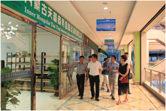 特種產(chǎn)業(yè)分會(huì)會(huì)長(zhǎng)、內(nèi)蒙古宇航人高技術(shù)產(chǎn)業(yè)有限責(zé)任公司總經(jīng)理王尚義與協(xié)會(huì)常務(wù)秘書(shū)長(zhǎng)劉俊青帶領(lǐng)會(huì)與企業(yè)代表參觀農(nóng)牧業(yè)電商創(chuàng)業(yè)園