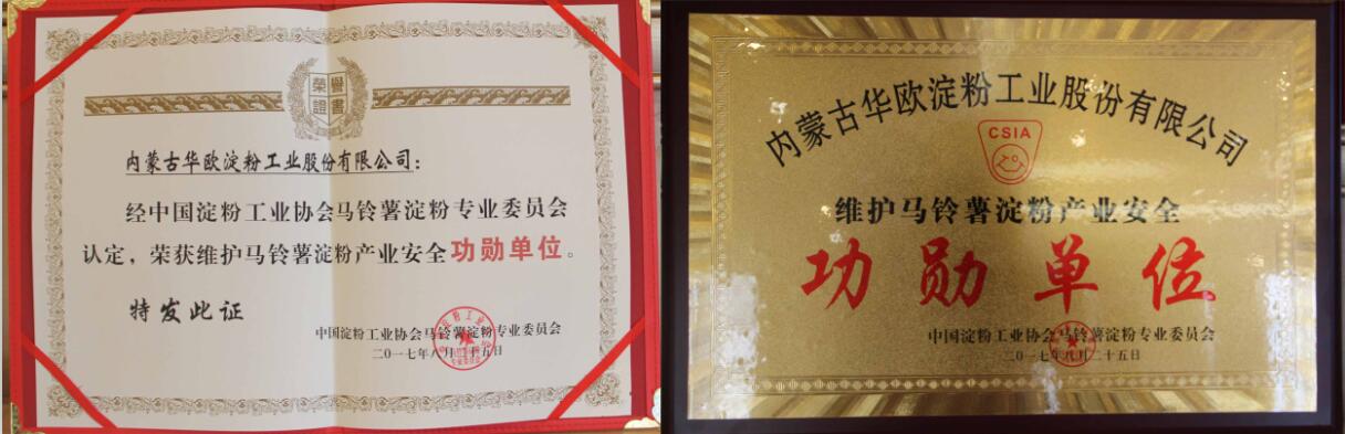內蒙古華歐淀粉工業(yè)股份有限公司榮獲功勛單位