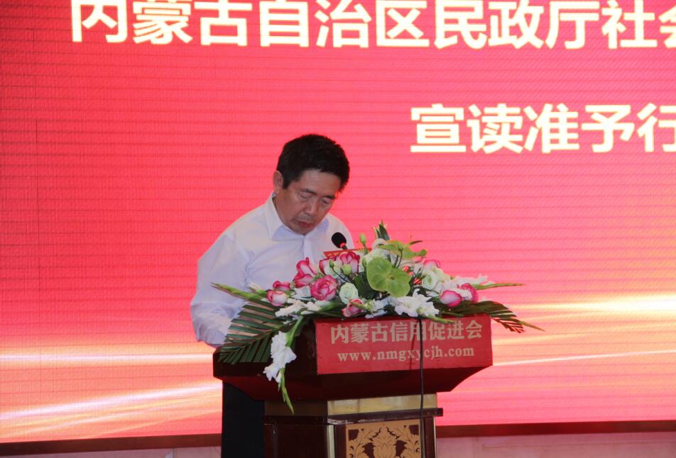 內(nèi)蒙古自治區(qū)民政廳社會(huì)組織管理局局長(zhǎng)韓少俊宣讀準(zhǔn)予行政許可決定書
