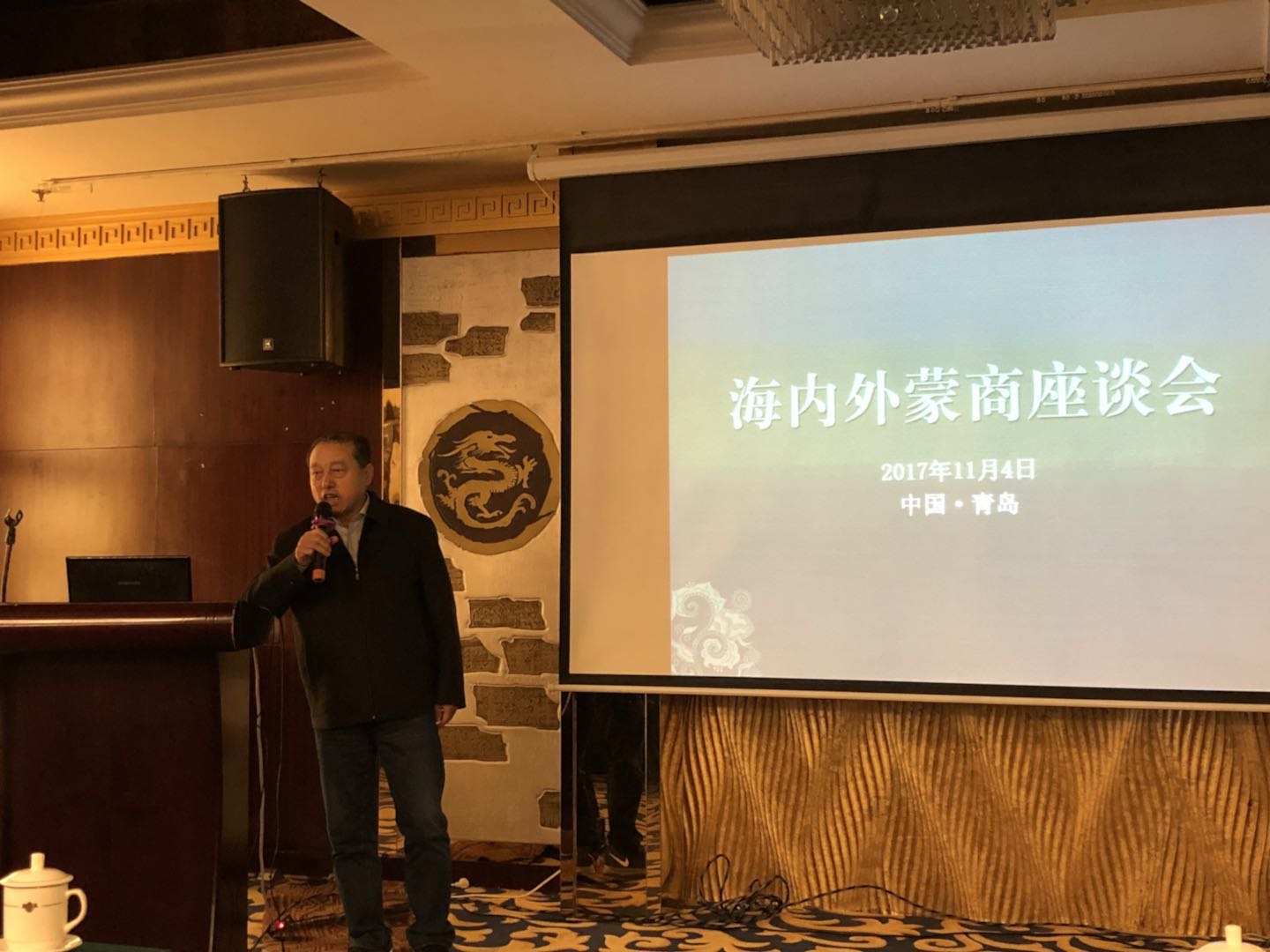 11月4日在青島花園酒店迎來了海內(nèi)外蒙商座談會,各省市內(nèi)蒙古商會會長交流分享經(jīng)驗(yàn),貢獻(xiàn)商機(jī),并由近十位山東內(nèi)蒙古商會代表進(jìn)行了項(xiàng)目路演。林永亮執(zhí)行會長在座談會上講到,全國各地蒙商會對于內(nèi)蒙古文化、產(chǎn)品和精神的傳播功不可沒,對內(nèi)蒙古綠色農(nóng)畜產(chǎn)品生產(chǎn)加工輸出基地建設(shè)作出了巨大的貢獻(xiàn),希望各地的蒙商會能積極引進(jìn)投資和資金,宣傳內(nèi)蒙古民族產(chǎn)品和民族精神,為內(nèi)蒙古農(nóng)牧業(yè)插上資本和技術(shù)的翅膀,助力內(nèi)蒙古經(jīng)濟(jì)騰飛。