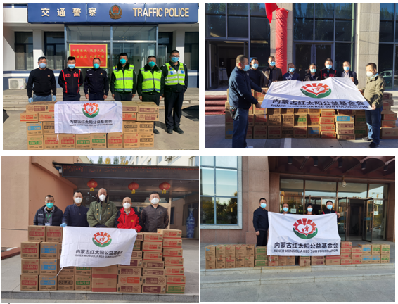 6、會員單位-內(nèi)蒙古草原紅太陽食品股份有限公司:10月1日-10月6日,內(nèi)蒙古草原紅太陽食品股份有限公司、紅太陽公益基金會分別走訪慰問興隆巷街道辦事處清泉社區(qū)、云中路辦事處、玉泉區(qū)小黑河鎮(zhèn)人民政府和堅守在各崗位的公安系統(tǒng)、應(yīng)急管理系統(tǒng)、工信系統(tǒng)、衛(wèi)健委系統(tǒng)等14家單位的防疫一線人員,共計捐贈燒烤醬、復(fù)合調(diào)味醬、金標(biāo)生抽、草菇老抽等系列調(diào)味品720件,累計捐贈金額83439元。