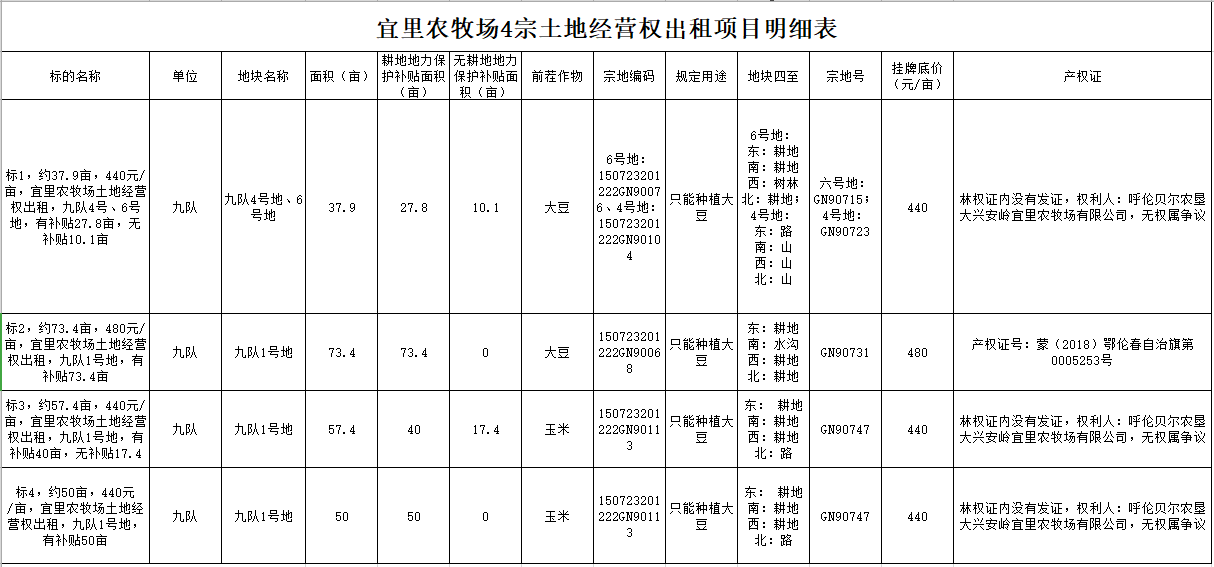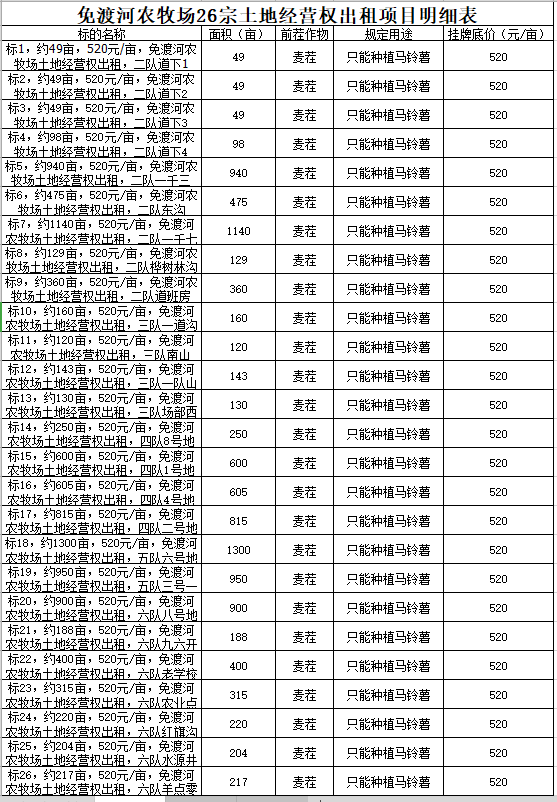 7.掛牌價:見明細表(掛牌價為每畝耕地應當支付的租賃底價)
