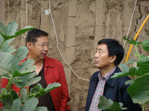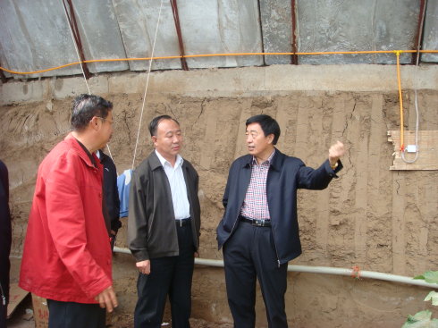 高副市長和基地負責人在越冬暖棚內(nèi)