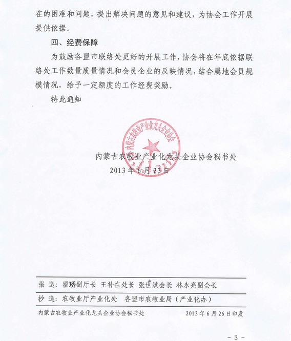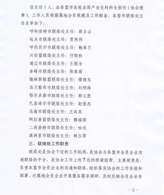關于設立農(nóng)牧業(yè)產(chǎn)業(yè)化龍頭企業(yè)協(xié)會盟市聯(lián)絡處的通知