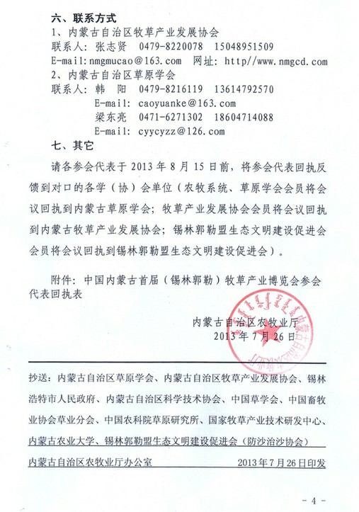 關(guān)于召開(kāi)中國(guó)內(nèi)蒙古首屆(錫林郭勒)牧草業(yè)博覽會(huì)的通知