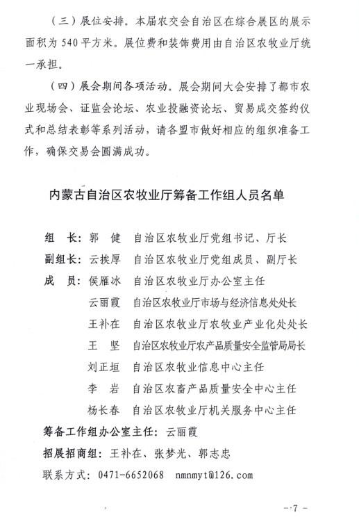 聯(lián)系人:招展招商組(農(nóng)牧業(yè)廳)