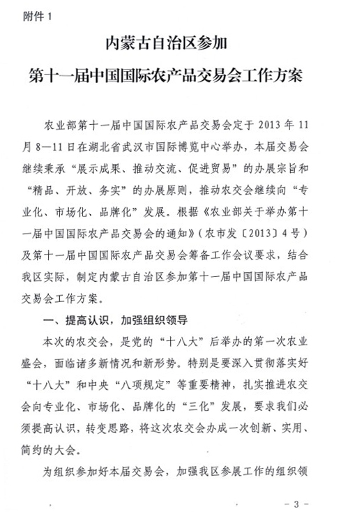 關(guān)于印發(fā)內(nèi)蒙古自治區(qū)參加第十一屆中國國際農(nóng)產(chǎn)品交易會工作方案的通知