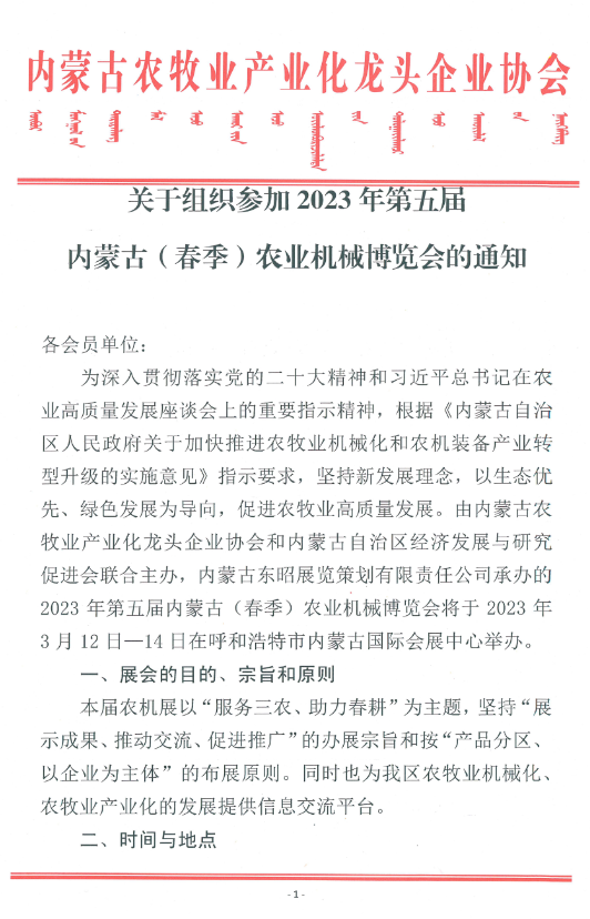 關(guān)于組織參加2023年第五屆內(nèi)蒙古(春季)農(nóng)業(yè)機(jī)械博覽會的通知