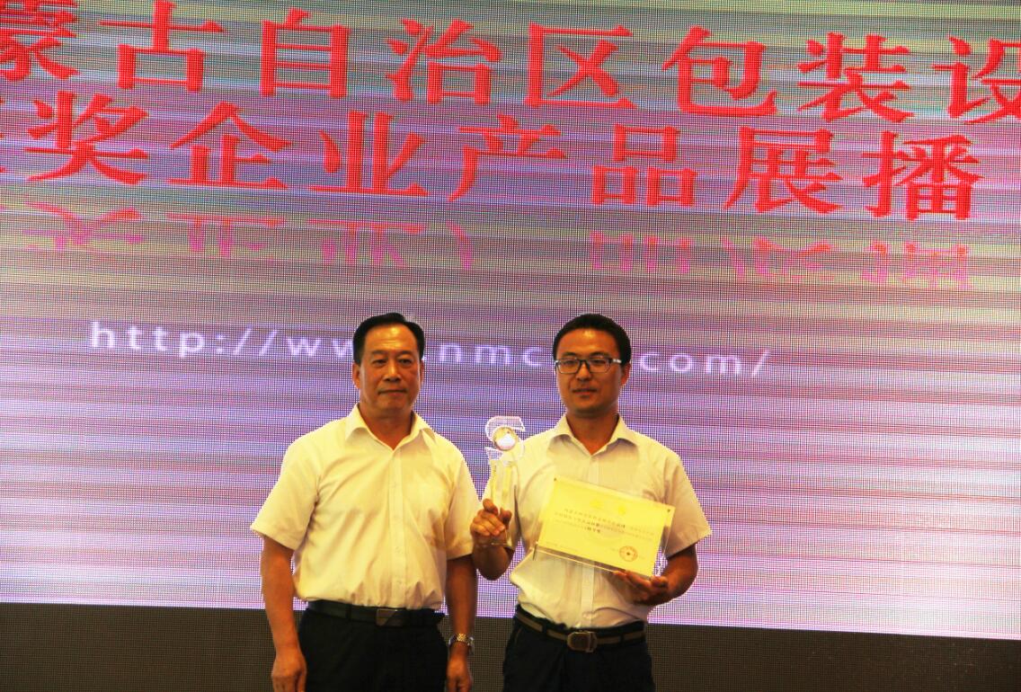 自治區(qū)農(nóng)牧業(yè)廳總農(nóng)藝師王雨鋒為包裝設(shè)計(jì)競賽特等獎獲獎單位、內(nèi)蒙古田豐農(nóng)牧有限責(zé)任公司頒發(fā)獎杯和證書