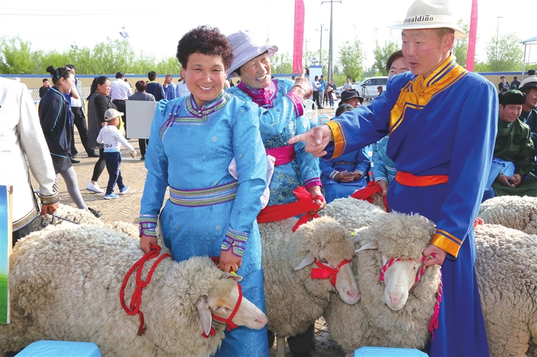 烏審旗牧民趕著自家的優(yōu)質(zhì)細(xì)毛羊前來參加旗政府組織的“賽羊大會”。
