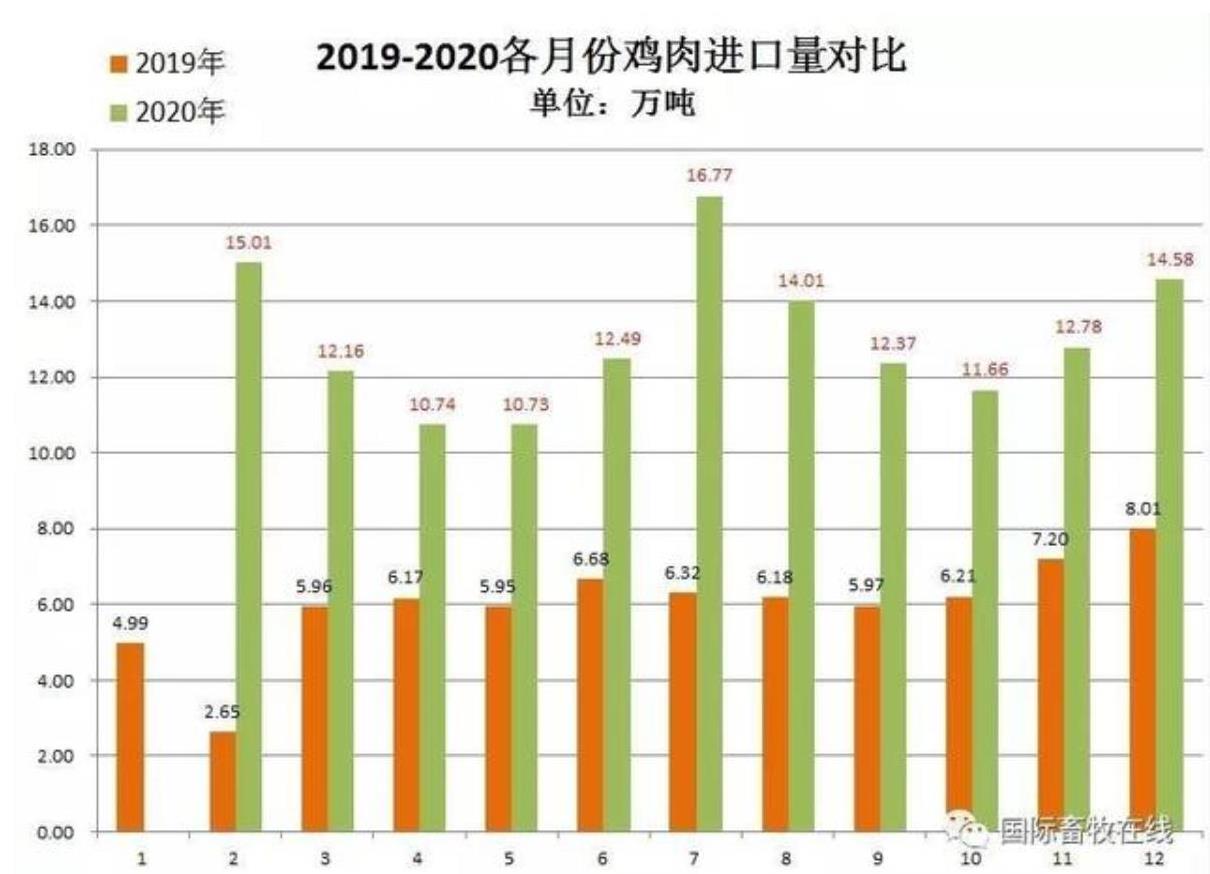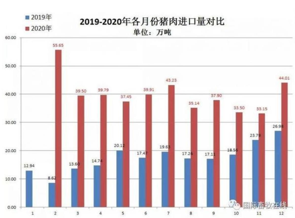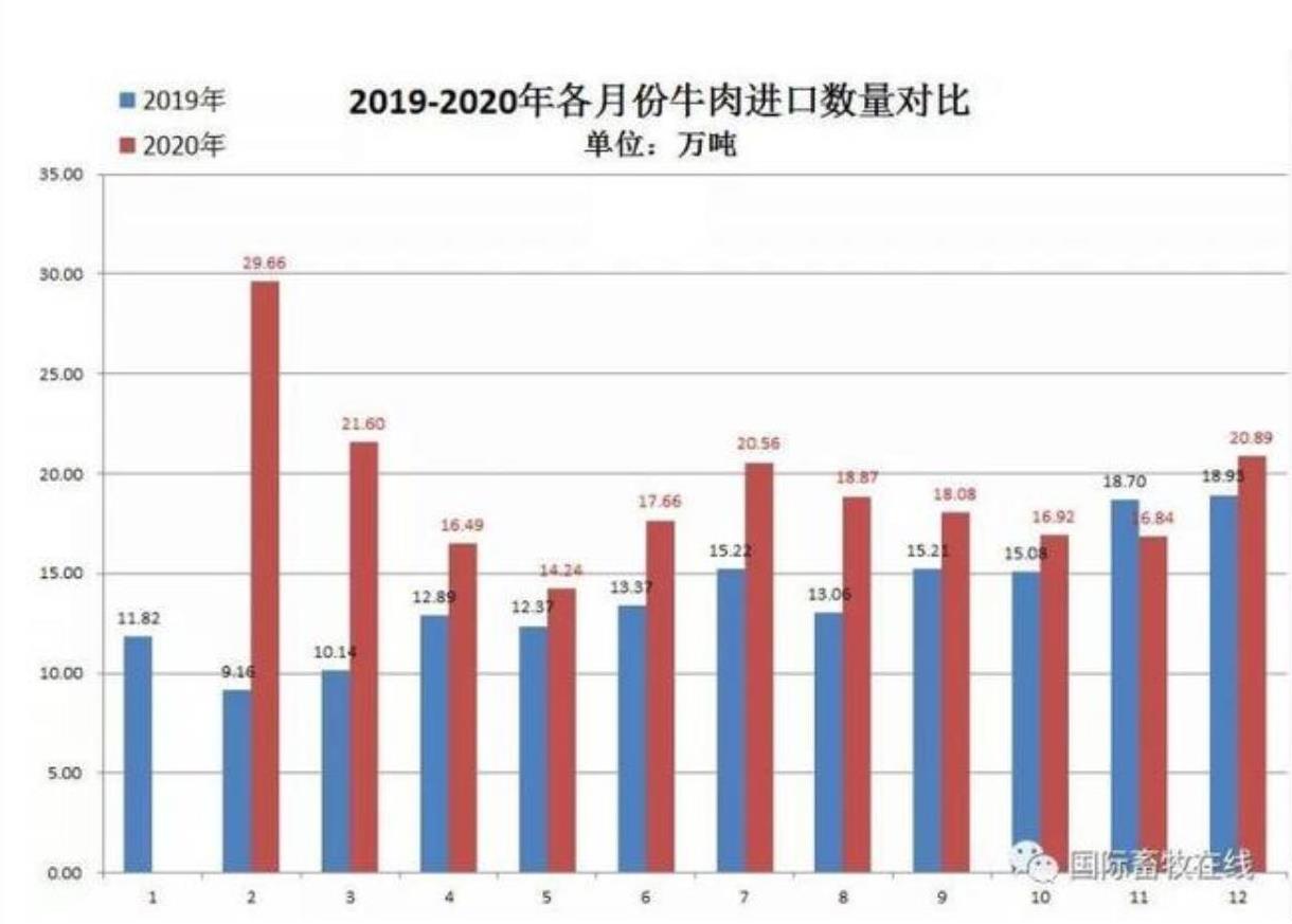 備注:20202月份數(shù)值為1-2月累計(jì)數(shù)據(jù),圖表來源于國(guó)際畜牧在線)