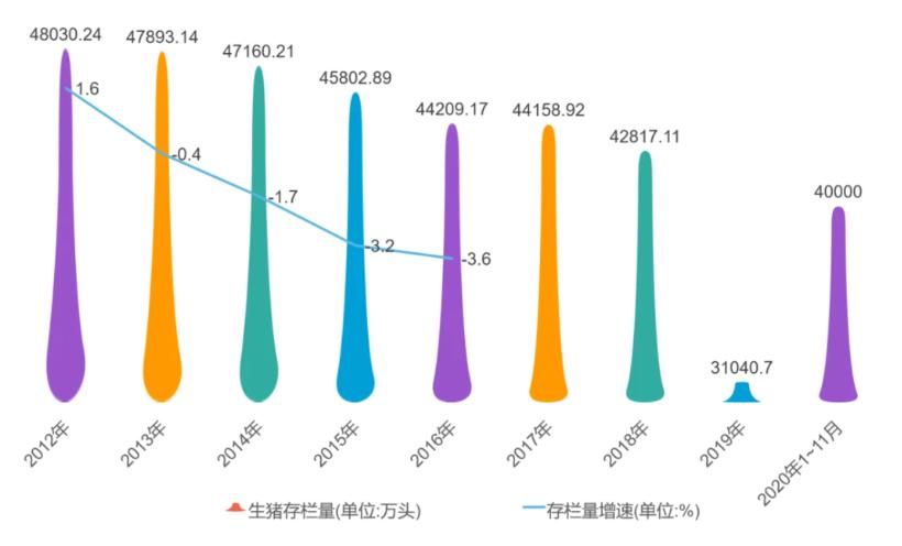 2020年中國(guó)生豬存欄量月度走勢(shì)圖