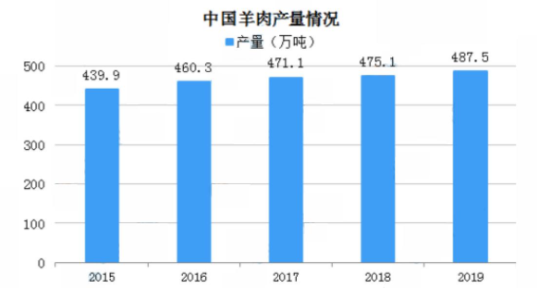 2019年內(nèi)蒙古羊肉產(chǎn)量位居第一達(dá)到109.8萬噸,新疆、山東排名第二和第三,產(chǎn)量分別為60.3萬噸、36.9萬噸,此外,河北、河南、四川、甘肅、云南羊肉產(chǎn)量超20萬噸。2015年全國(guó)羊肉產(chǎn)量439.9萬噸,2019年增至487.5萬噸,同比增長(zhǎng)2.6%。