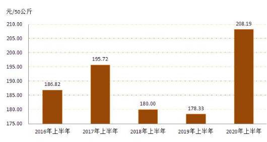 3   20162020年上半年全區(qū)小麥?zhǔn)召弮r(jià)格對比圖